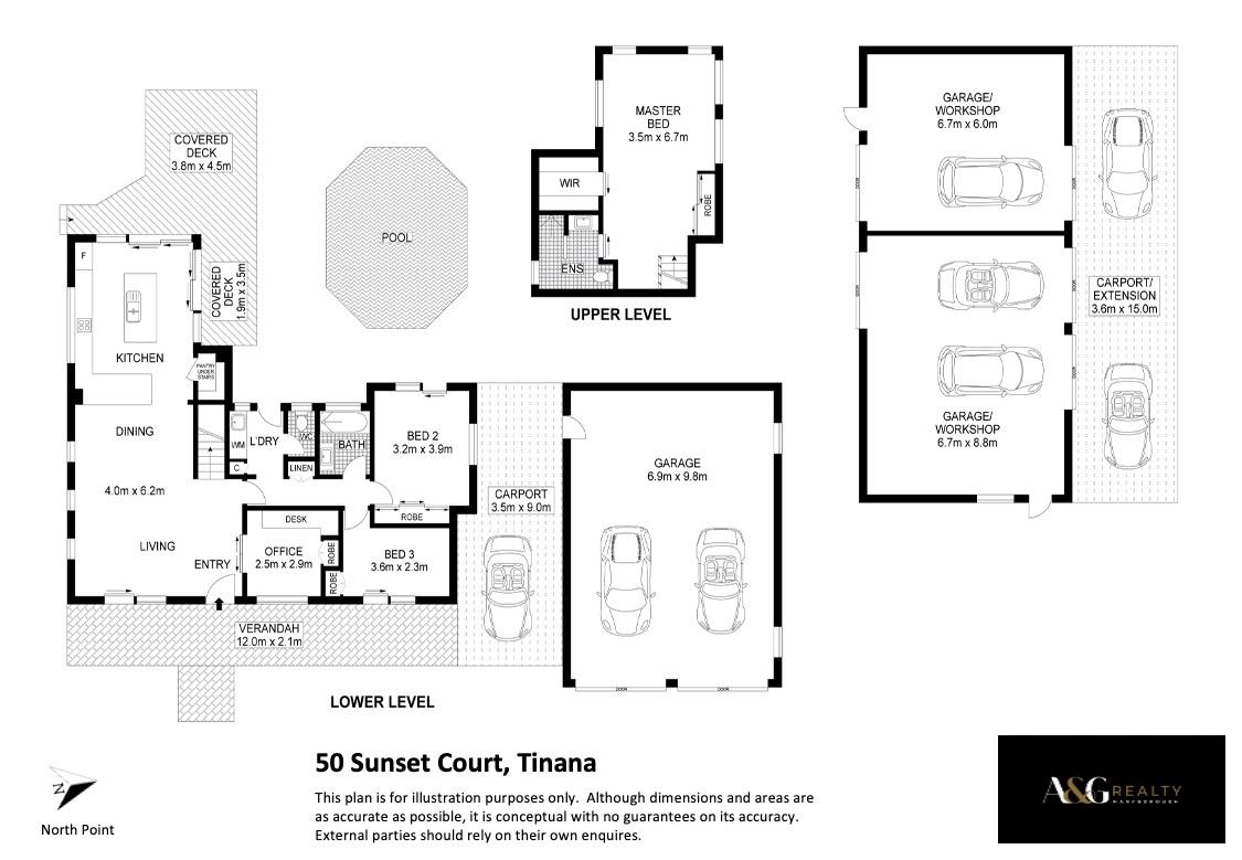 • 9 car accommodation (5-bay garage + 4-bay carport)