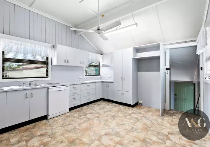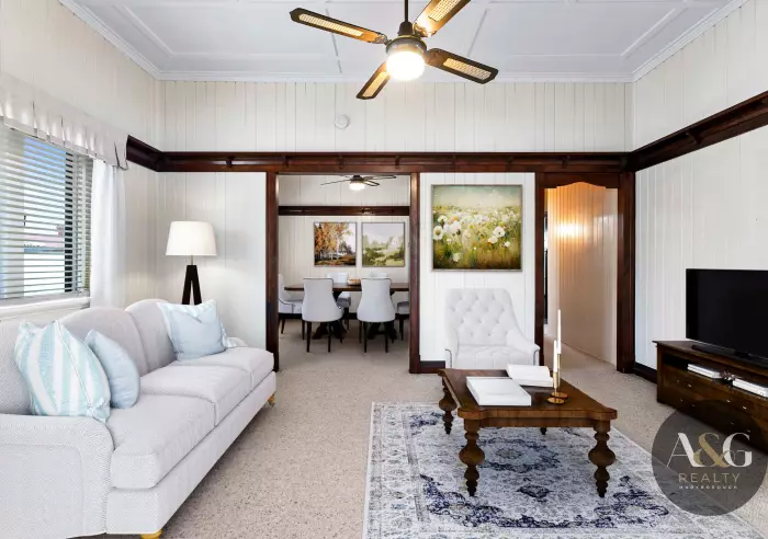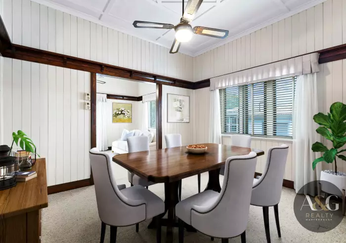 Inside, you’ll find a spacious kitchen and separate dining room, both reflecting the warmth and practicality of homes built in a time when craftsmanship mattered. Hidden beneath the carpets, lie original Fraser Island hardwood floors, waiting to be revealed and restored to their natural beauty.